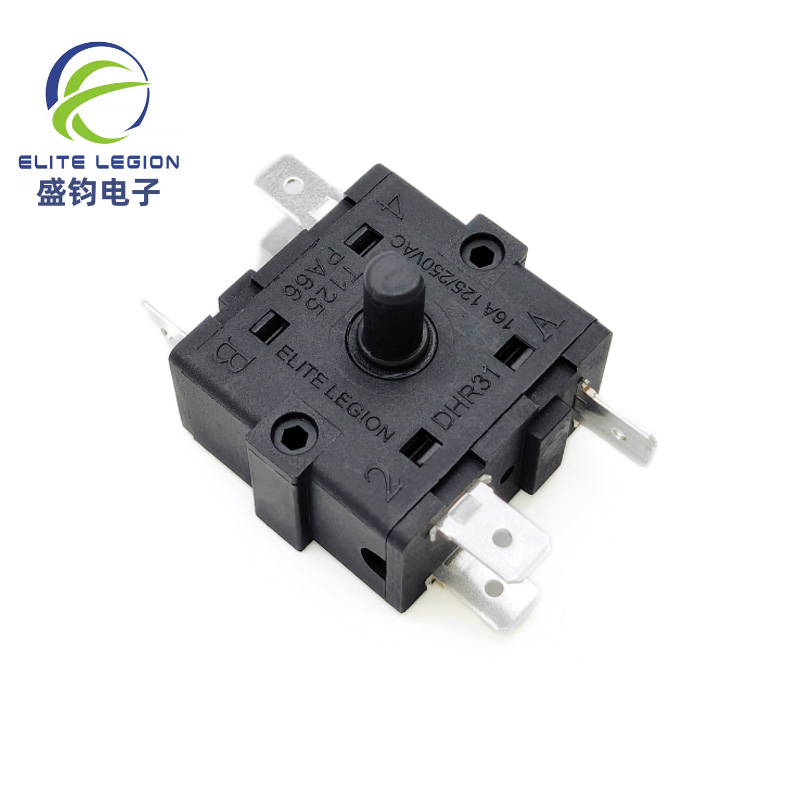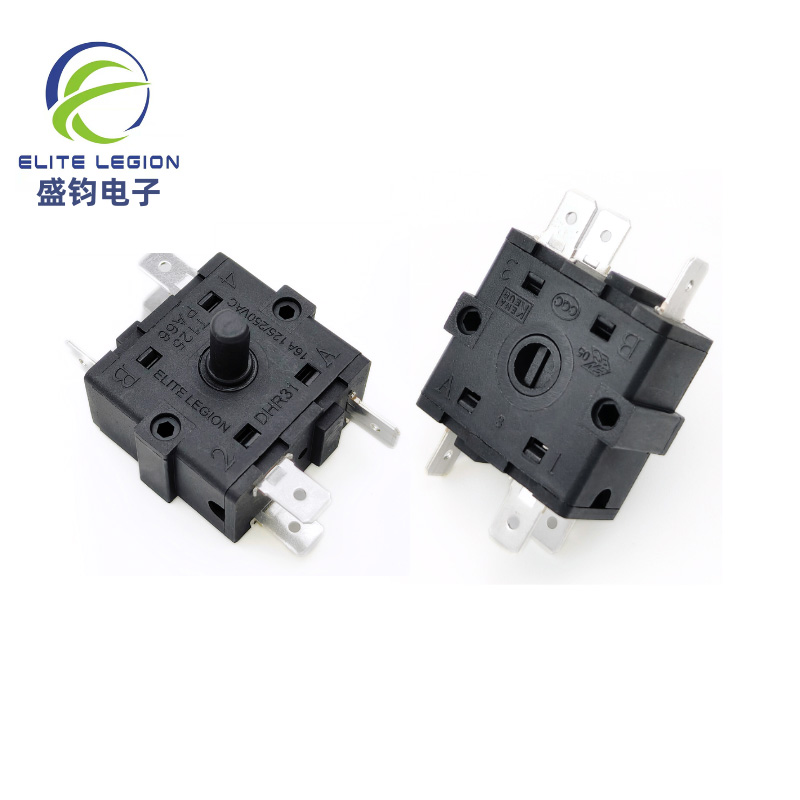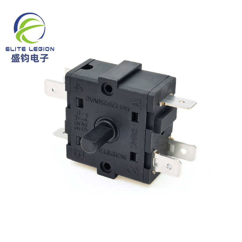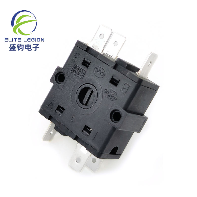 ELITE LEGION 6 pin 3 speed rotary switch is a double pole rotary switch with 2 input terminals and 4 output terminals. The rotation angle of each level is 30 degrees. The 6 pin 3 speed rotary switch housing is made of high-quality flame-retardant nylon material, making it safer for consumers to use. The 6 pin 3 speed rotary switch contacts are silver contacts, can use a current of no more than 16A under voltage conditions of 125/250V, meets most requirements in the electrical market.